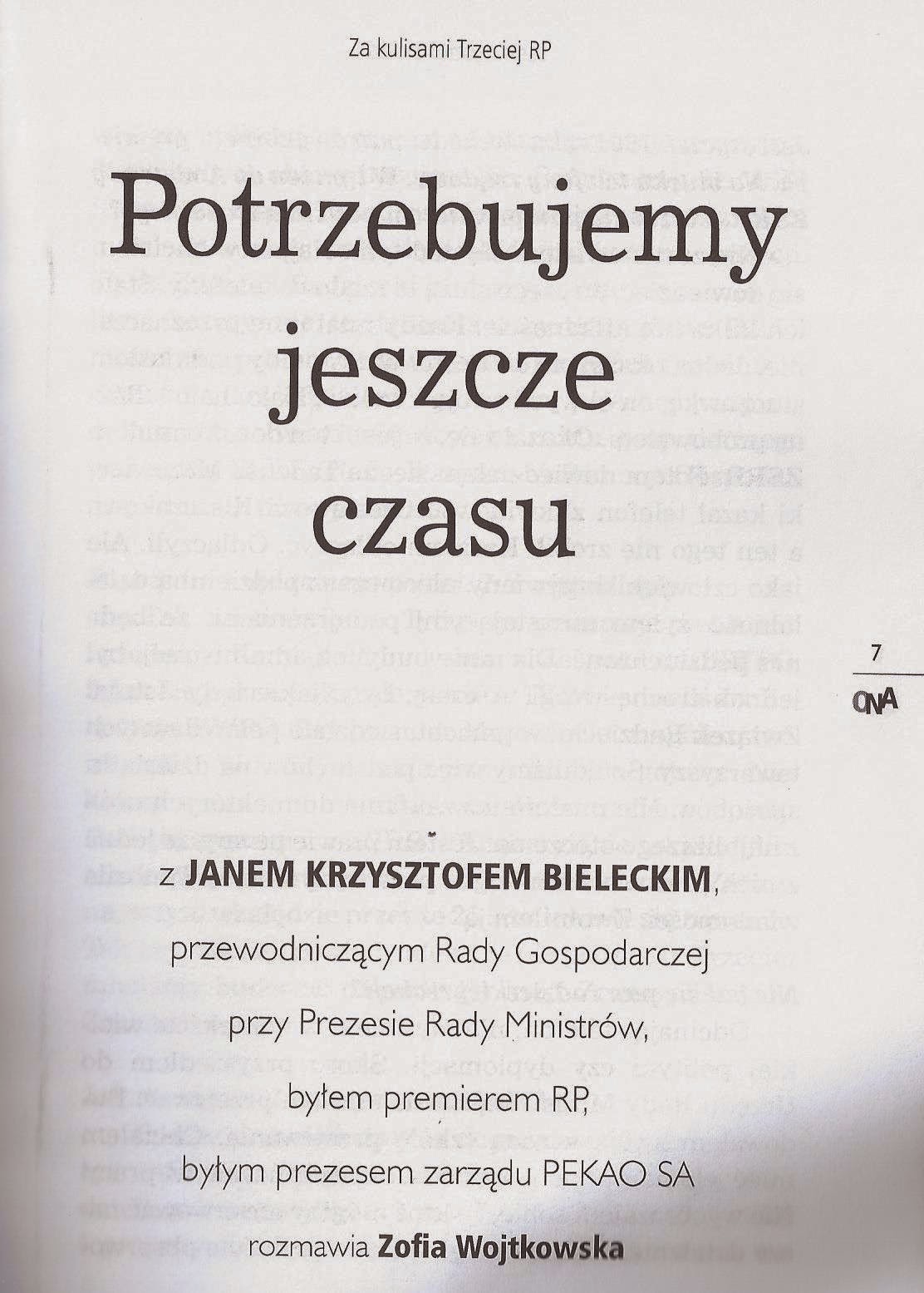 Z Janem Krzysztofem Bieleckim, przewodniczącym Rady Gospodarczej przy Prezesie Rady Ministrów, byłym premierem RP, byłym prezesem zarządu PKO SA – rozmawia Zofia Wojtkowska.